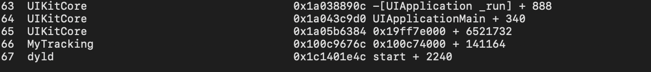 이것을 사람이 알아볼 수 있게 식별하는 과정을 symbolicate(16진수로 이루어진 주소값을 Symbol로 전환)라고 한다