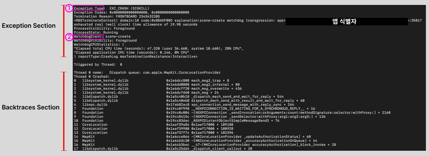 이미지의 1번을 보면 나는 EXC_CRASH(SIGKILL)이라고 적혀있다